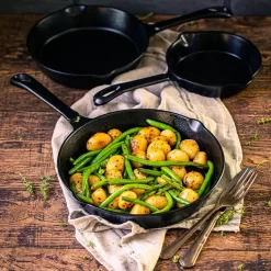 Jim Beam Grillpfanne Gusseisen – Bratpfanne Mit 3 Fächern – Steakpfanne Gusseisern Induktion Eckig