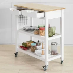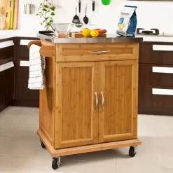 SoBuy Küchenwagen Aus Bambus Mit Edelstahltop, Servierwagen FKW13-N