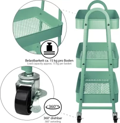 Servierwagen RONJA Küchenwagen Küchentrolley Beistellwagen Verchromt Auf Rollen, 4 Drahtkörbe