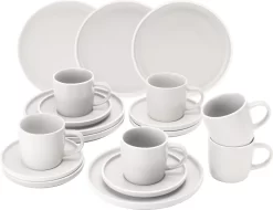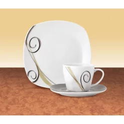 Van Well Frühstücksservice Silver Night, 12tlg 6 Personen, 6 Kaffeebecher + 6 Teller, Linien-Dekor