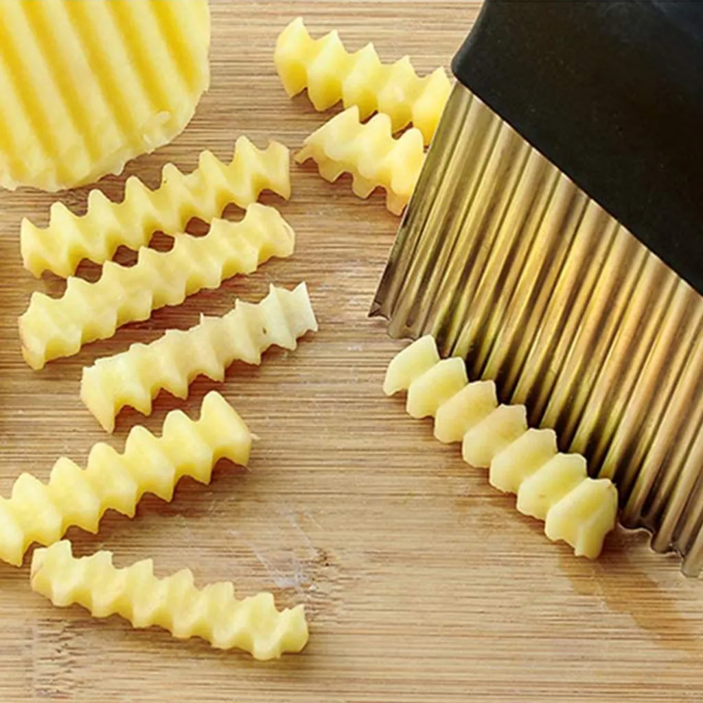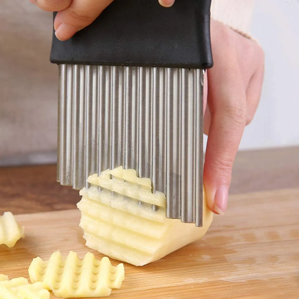 2 PCS Pommes Wellenmesser, Edelstahl Kartoffelschneider, Pommesschneider Pommes Frites Schneider Kartoffel Wellenschneider, Obst Gemüse Salat Schneider Werkzeug