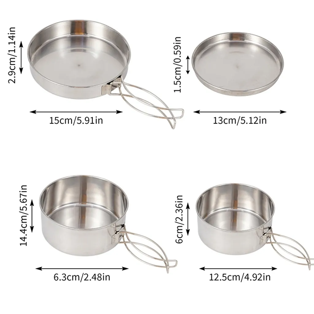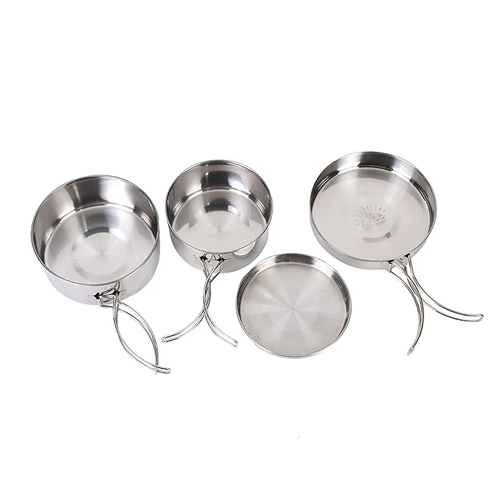 4 Teile / Satz Edelstahl Faltbarer Und Stapelbarer Campingtopf Kompakte Campingpfannen