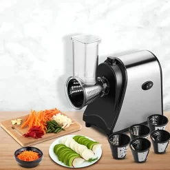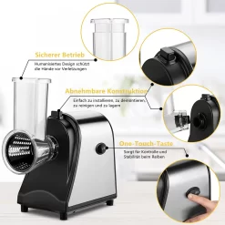 5 In 1 Elektrischer Gemüsehobel, 250W Automatische Gemüsereibe Mit 5 Kegel-Klingen, Edelstahl Gemüseschneider, Multifunktionsreibe Gemüse Raspel Für Obst Gemüse