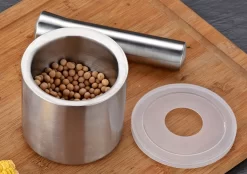 BAYLI – Edelstahl Mörser Mit Stößel & Deckel – Massiver Gewürzmörser Für Die Küche – Bruchfeste Kräutermühle – Gewürzmühle Für Kräuter Und Gewürze – Tabletten Zerkleiner – Tablettenmörser – KitchenAid