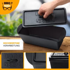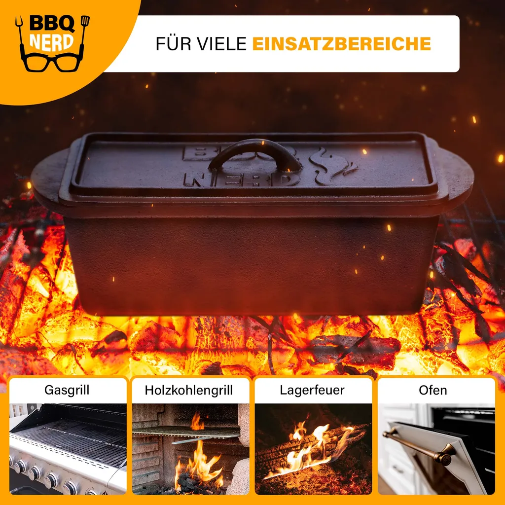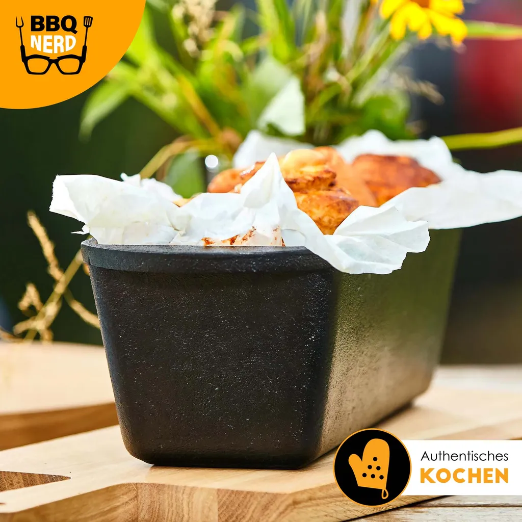 BBQ-Nerd© Kleine Brotbackform 3 L – Gusseisen Kastenform Mit Deckel – Backform Für Ofen, Grill, Feuer – Brottopf Dutch Oven Für Hackbraten Fleischkäse Brot