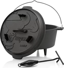 BBQ-Toro Dutch Oven Set 3-teilig, 4.5 QT Feuertopf + Deckelheber, Gusseisen Topf