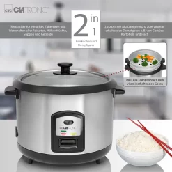 Clatronic Reis-Kocher Multi-Kocher Dampf-Garer 700 W + Löffel RK 3567