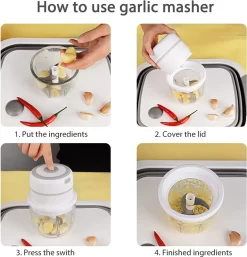 Elektrische Mini-Chopper-Küchenmaschine, Tragbare Knoblauchmühle, Kabelloser Kleiner Lebensmittel-Chopper Mit USB-Aufladung Für Ingwer-Zwiebel-Chili-Gemüse (250 Ml),Weiß,250ml