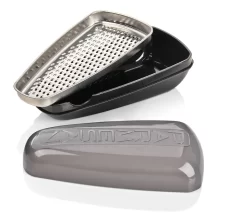 Fackelmann Parmesanreibe- Und Frischebox, Parmesanhobel, Käsereibe Mit Servier-Behälter (Farbe: Transparent/Grau), Menge: 1 Stück