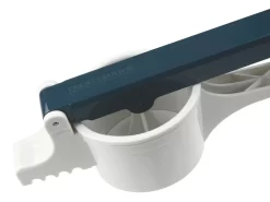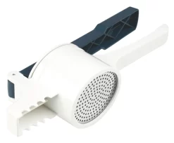 Fackelmann Spätzlepresse Easyprepare, Kortoffelpresse Mit 3 Austauschbaren Lochscheiben, Presse Mit 4 Verschiedenen Auflagehaken, Hochwetiger Kartoffelstampfer (Farbe: Weiß / Blau-Grau), 1 X 4 Teile