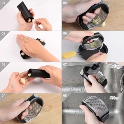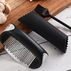 Garlic Press Knoblauchpresse Edelstahl Rostfrei, Knoblauchschneider Spülmaschinenfest Küchenhelfer Mit Silikon Schäler Und Ingwerpresse Bürste