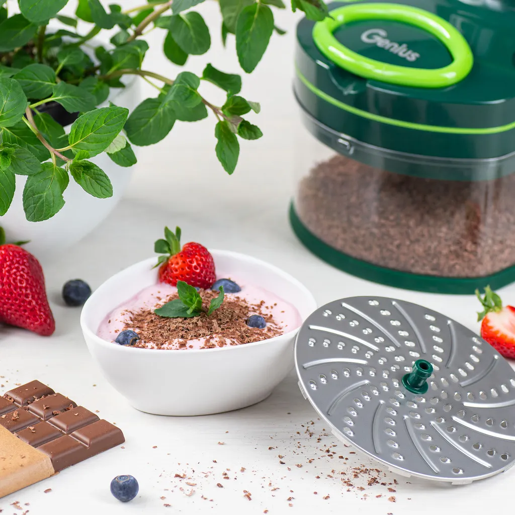 Genius Nicer Dicer Pegasus Gemüsezerkleinerer 10-tlg | Handzugdeckel | Geringer Kraftaufwand | Gemüseschneider Für Schnelles & Sicheres Arbeiten | Fein Reiben + Grob Schneiden
