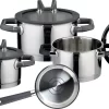 GSW Kochtopf-Set Magic Color 7 Tlg. Grau, Edelstahl Rostfrei 18/8, Glas, Kochtopf Mit Glasdeckel ø Ca. 16 X H 7,5cm / ø Ca. 20 X H 9,5cm / ø Ca. 24 X H 11,5cm / Stielkasserolle ø Ca. 16 X H 7,5cm