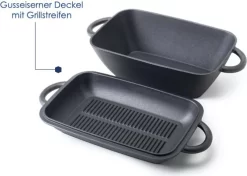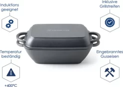 Hanseküche Gusseisen Bräter – Bereits Eingebrannter Gusseisen Topf 2in1 Mit Deckel, Gusseisenpfanne, Brotbackform Zum Brotbacken, Hochwertige Grillpfanne