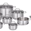 Kochgeschirr | 12 Tlg Kochtopfset | Induktion | Topf 18/10 Edelstahl | Lila Blumen