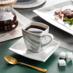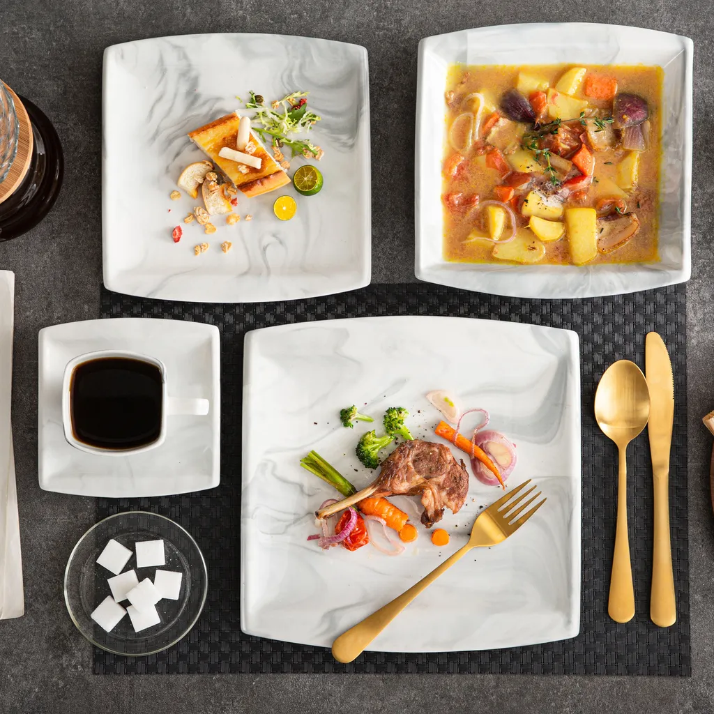 MALACASA, Serie Blance, Kombiservice 30 Tlg. Marmor Porzellan Geschirrset Eckig Tafelservice Mit 180 Ml Kaffeetassen, Untertassen, Dessertteller, Tiefteller Und Flachteller