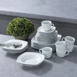 Malacasa Serie Julia, Tafelservice 60-teilig Kombiservice Porzellan Geschirrset Mit Kaffeetassen, Unterteller, Kuchenteller, Suppenteller Und Flachteller, Kaffeeservice Für 12 Personen