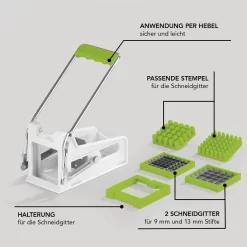 MAXXMEE Pommes Schneider Edelstahl Frites Gemüse Schneider Kartoffel Schneider Cutter Pommesschneider – Weiß/grün Pommes Schneider Edelstahl Frites Gemüse Schneider Kartoffel Schneider Cutter