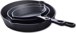 Mucola Bratpfanne Grillpfanne Pfannenset Gusseisen 3 Tlg. Ø25 Ø19 Ø15,5 Cm Griff Herd Gussbratpfanne Steakpfanne Gasherd Induktionsherd Feuer Ofen Herdplatte