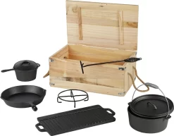 Mucola Dutch Oven 7-teilig Camping Kochgeschir Gulaschkanone Gusseisen Grill Pfanne