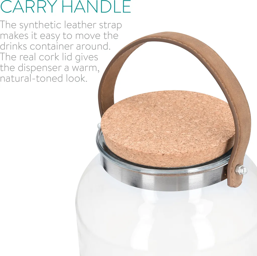 Navaris Getränkespender 5,6 Liter Aus Glas – Mit Zapfhahn Aus Edelstahl Und Kork Deckel – Wasserspender Glasbehälter Für Kalte Getränke