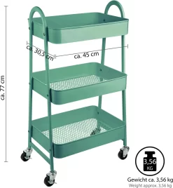 ONVAYA® Servierwagen Silvio | Beistellwagen | Mint | 30,5 X 45 X 77 Cm | 3 Fächer | Multifunktionswagen | Transportwagen | Allzweckwagen | Küchentrolley | Nischenregal