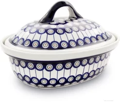 Original Bunzlauer Keramik Bräter Mit Deckel V=2,2 Liter B=25,5cm L=31,8cm H=19,2cm Design 8