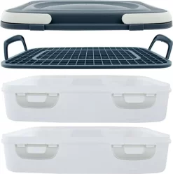 Party Container Kuchenbehälter Lebensmittel Transportbox XL Mit 2 Etagen Und Klappbaren Griffen, Farbe:Grau