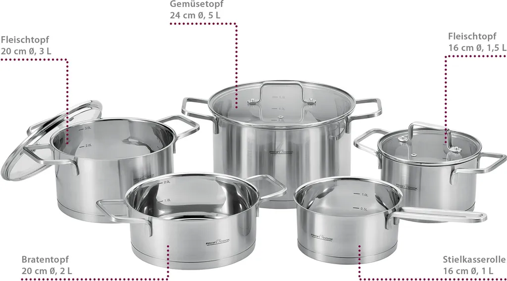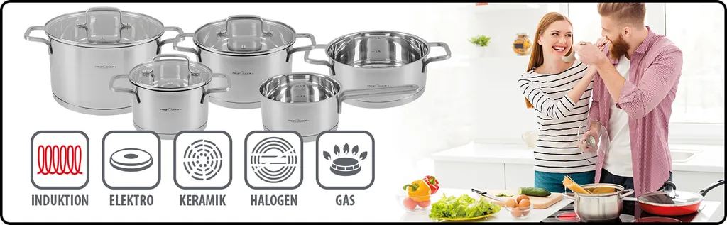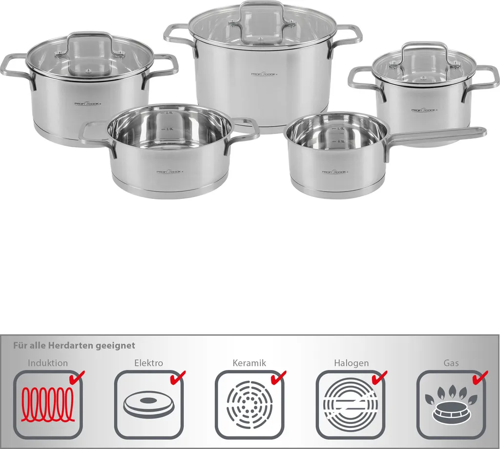 ProfiCook PC-KTS 1225 Induktions-Kochtopfset Mit Deckel, Topfset 8 Teilig, Für Induktion, Elektroherd, Keramik, Halogen Und Gas-Herd, Edelstahl