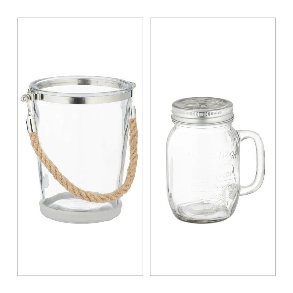 Relaxdays 4 Trinkgläser Mit Deckel Und Zubehör