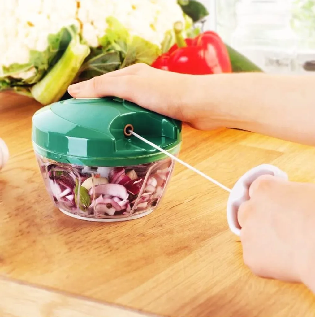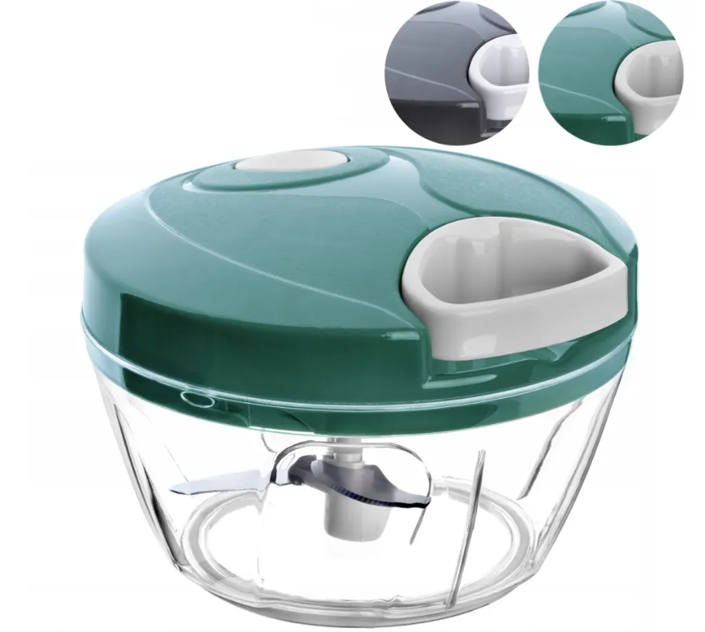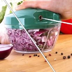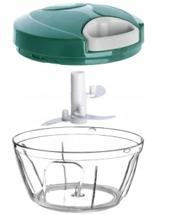Sclosserei Bayerwald Multizerkleinerer Manuell – Gemüsehobel Edelstahl Mit Seilzug Griff – Zerkleinerer Mit Salatschüssel Mit Deckel – Zwiebelschneider – (⌀12,7, 9 Cm Höhe, Grün)
