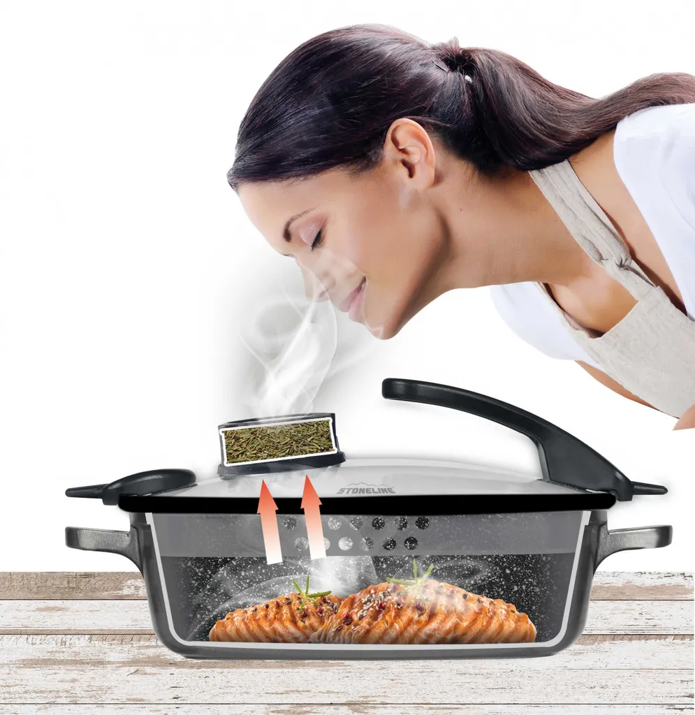STONELINE® Smell Well Eckpfanne 24 X 24 Cm, Inkl. Glasdeckel Mit Geruchsfilter- Oder Aromafunktion