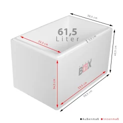 Styroporbox 61W | Wand: 3,0cm | Volumen: 61,5L | Innenmaß:53x33x34cm | Weiß Isolierbox Thermobox Kühlbox Warmhaltebox