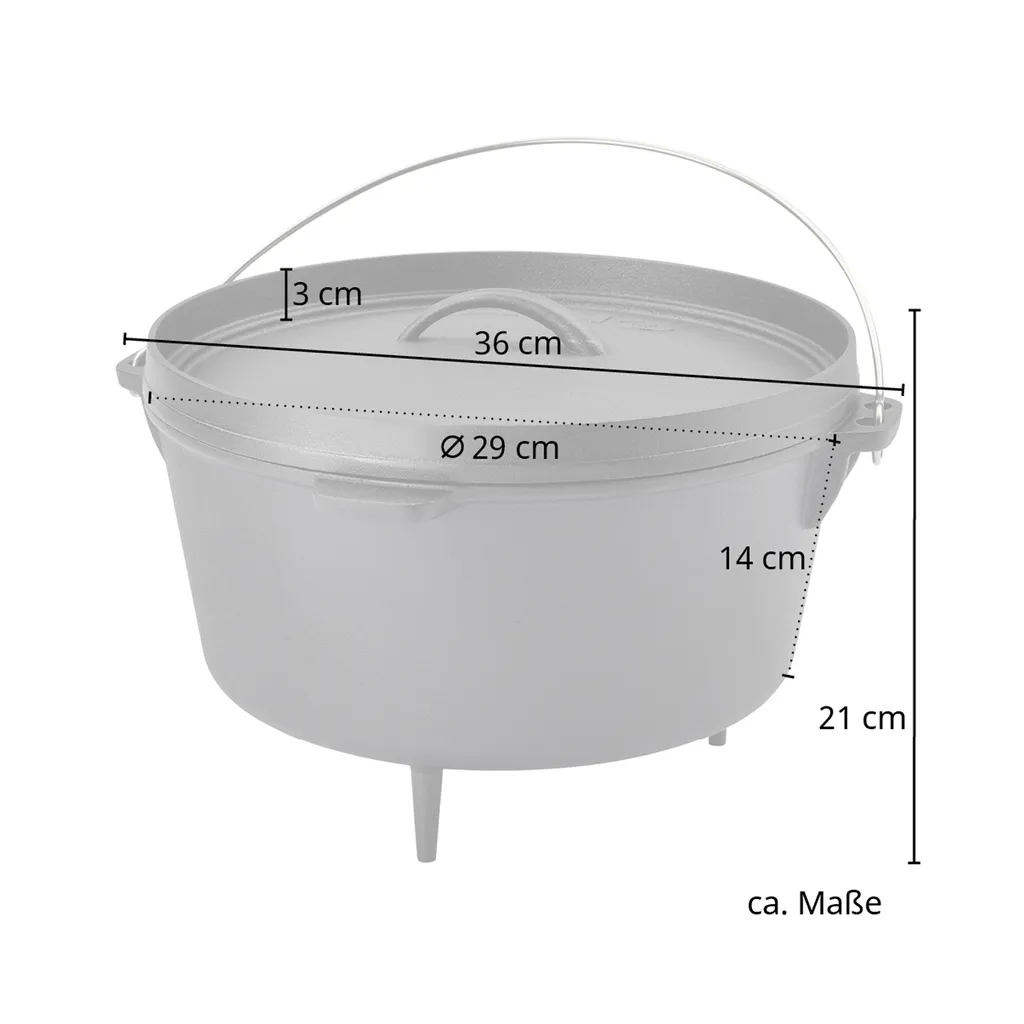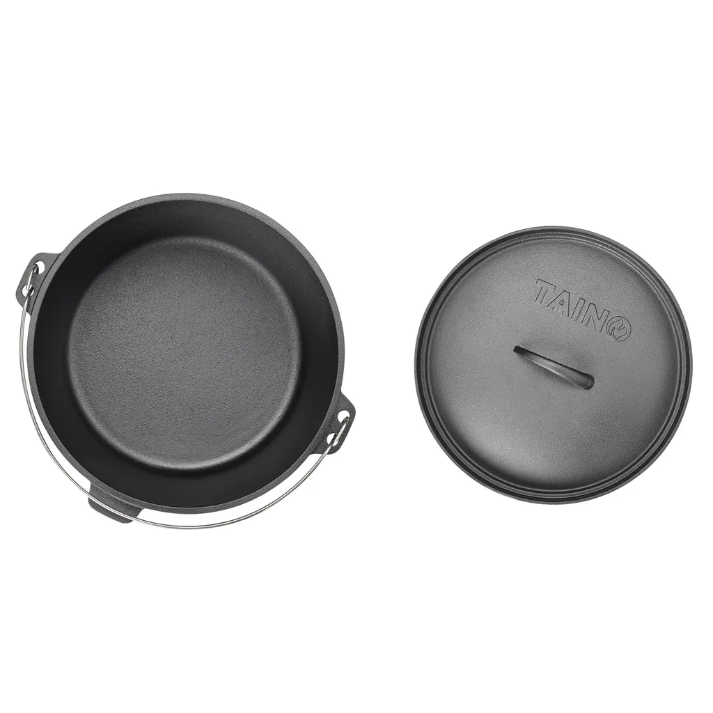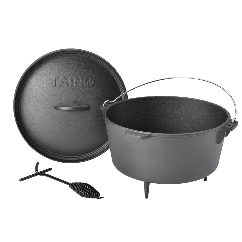 TAINO Dutch Oven 8 Liter Gusseisen-Topf Feuertopf Mit Füßen Deckel-Heber Dopf