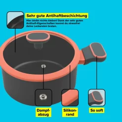 Tasty Antihaft-Kochtopf 20 Cm, Kleiner Bratentopf Mit Glasdeckel Und Softtouch-Griffen