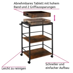 Tectake Servierwagen Worcester 65×41,5x87cm – Industrial Dunkelbraun