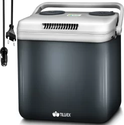 Tillvex Kühlbox Elektrisch 32L Grau | Mini-Kühlschrank 230 V Und 12 V Für KFZ Auto Camping | Kühlt & Wärmt | ECO-Modus