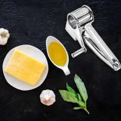 Trommelreibe Edelstahl Gemüse Käseschneider Manuelle Dreh Käsereiben Mit 3 Ersatzköpfen Kurbel 20*11*8.8cm