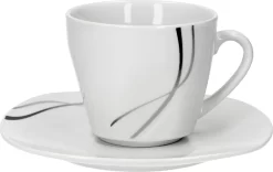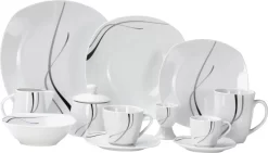 Van Well Kombiservice Silver Night 62-tlg 6 Personen, Tafel + Kaffee + Zubehör, Linien-Dekor