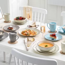 Vancasso Navia Nature 16 Teilig Kombiservice, Geschirrset Aus Steingut In 4 Farbkombi (Erdfarben, Hellblau, Cremefarben, Beige), Vintage Design