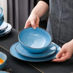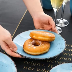 Vancasso Serie Navia Oceano, 16 Teilig Essservice Set Aus Steingut, Tafeiservice Für 4 Personen, Wasserblau, Vintage Aussehen, Natur Design