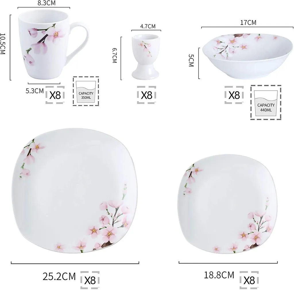 VEWEET Porzellan Kombiservice ‚Annie‘, 40 Teilig Geschirrservice Für 8 Personen, Frühstückservice Mit Je 8 Eierbecher, Kaffeebecher 350 Ml, Müslischalen, Dessertteller Und Flachteller