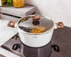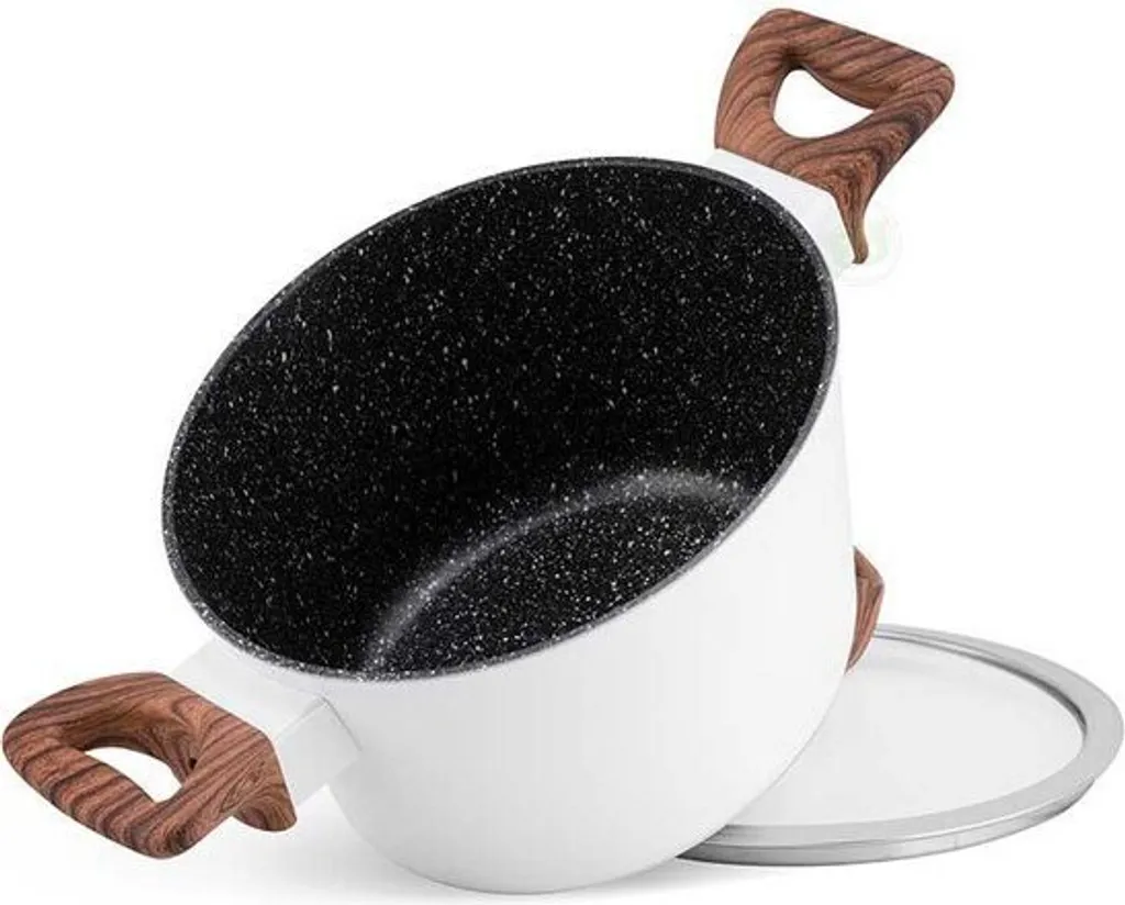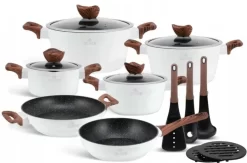 Weiße Keramik-Marmortöpfe Mit Bratpfanne Und Wok Set 15-teiliges