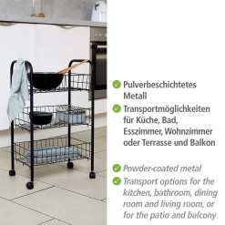 Wenko Rollwagen Florenz Mit 3 Ablagen Schwarz